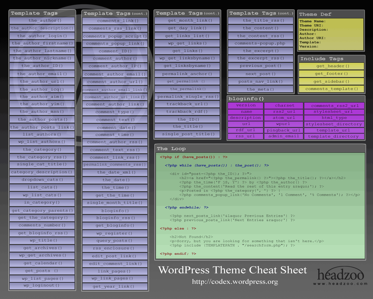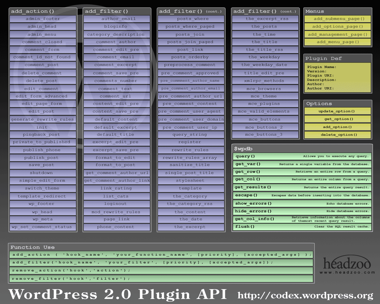 HeadZoo WordPress Plugin API Cheatsheet [.png]